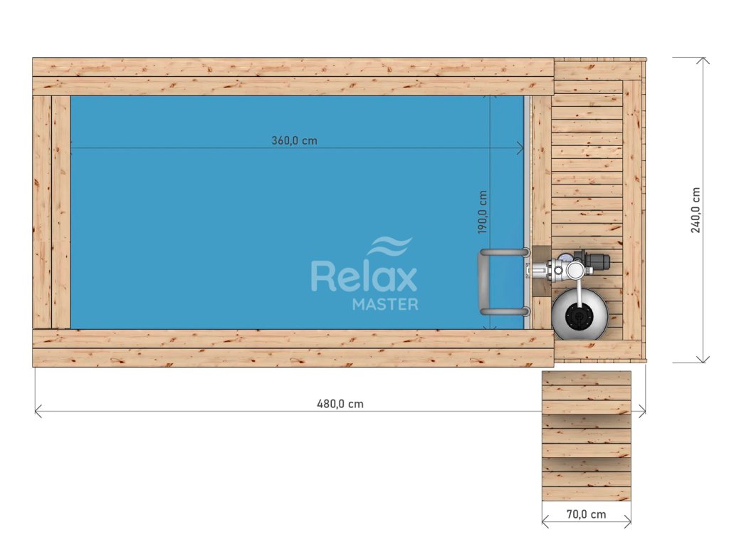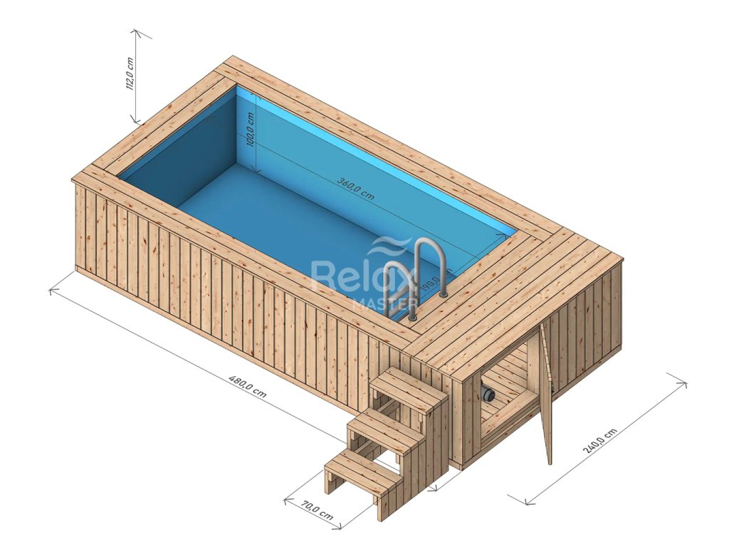 Dřevěný bazén o rozměrech 480 × 240 cm je ideální volbou pro rodiny, které hledají odolný, estetický a plně vybavený bazén s dlouhou životností. Kombinuje přírodní vzhled masivního smrkového dřeva s moderní technologií a vysokým uživatelským komfortem.