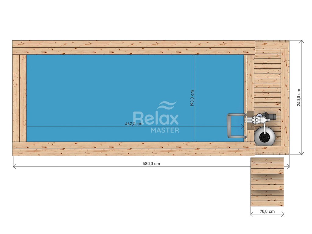 Dřevěný bazén o rozměrech 480 × 240 cm je ideální volbou pro rodiny, které hledají odolný, estetický a plně vybavený bazén s dlouhou životností. Kombinuje přírodní vzhled masivního smrkového dřeva s moderní technologií a vysokým uživatelským komfortem.