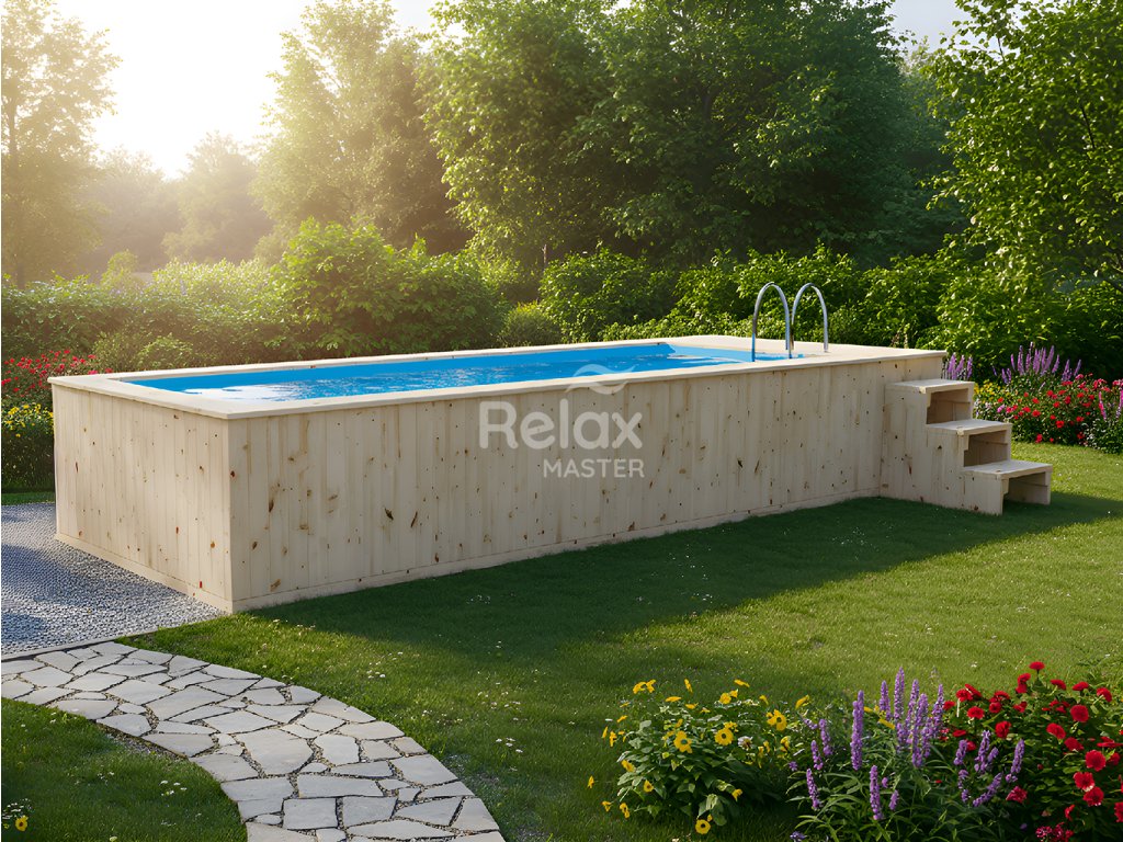 Dřevěný bazén 680 × 240 cm – velký rodinný bazén ze smrku