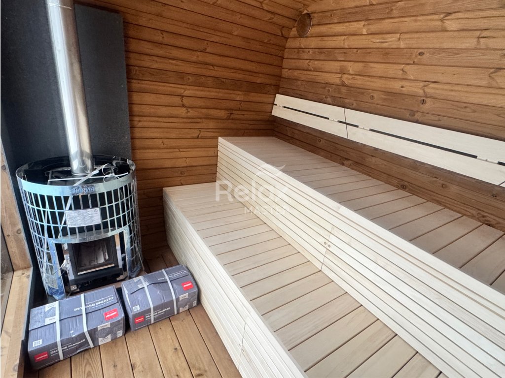 Sauna je vyrobena z odolného termo dřeva, které vyniká dlouhou životností, tvarovou stálostí a atraktivním vzhledem. Promyšlené dispoziční řešení.