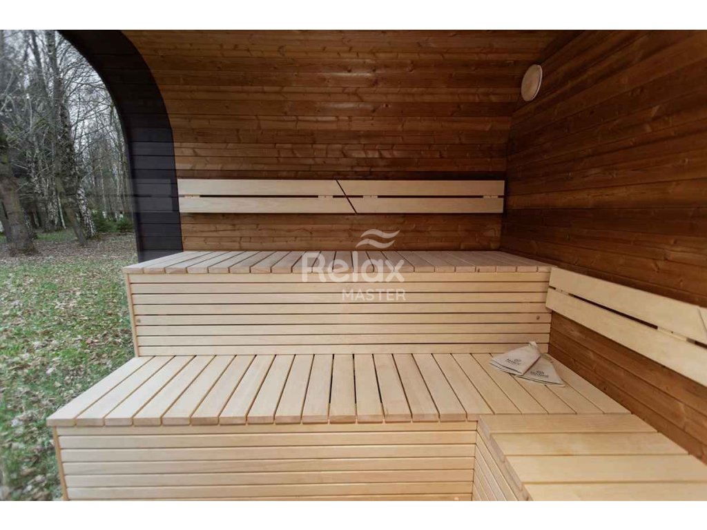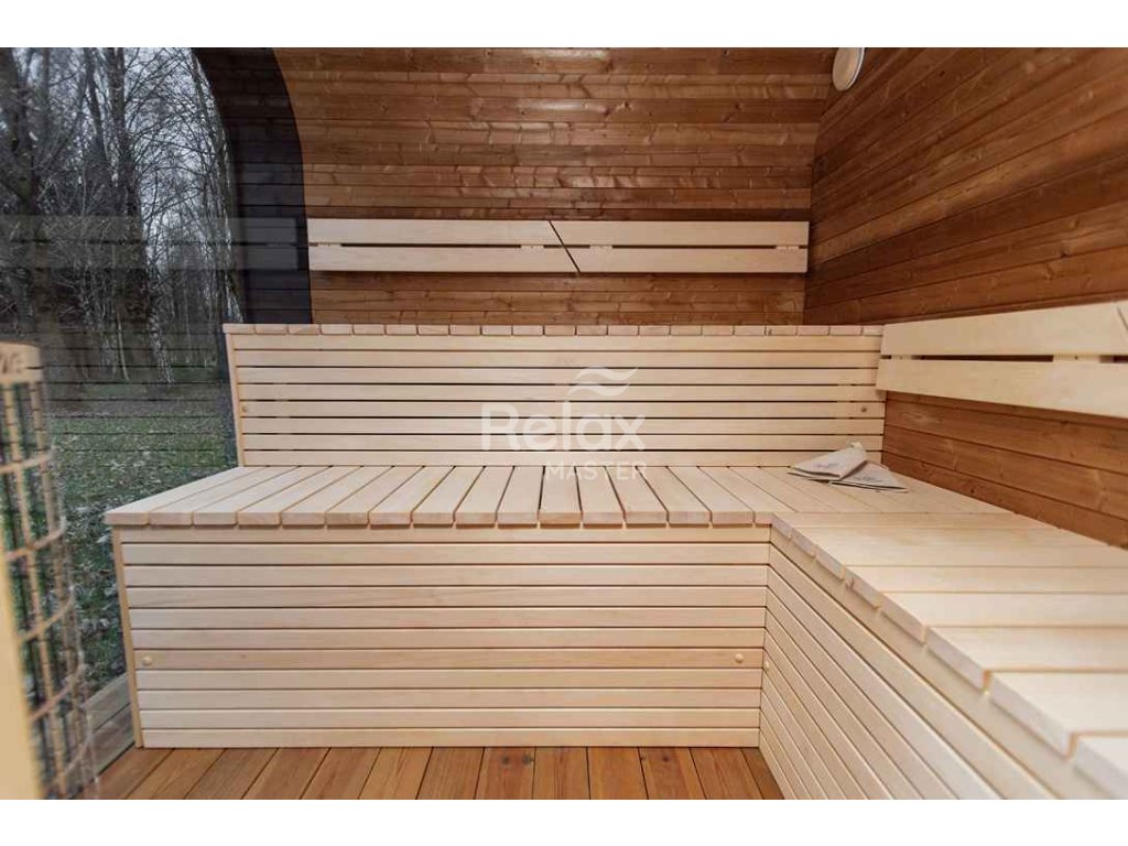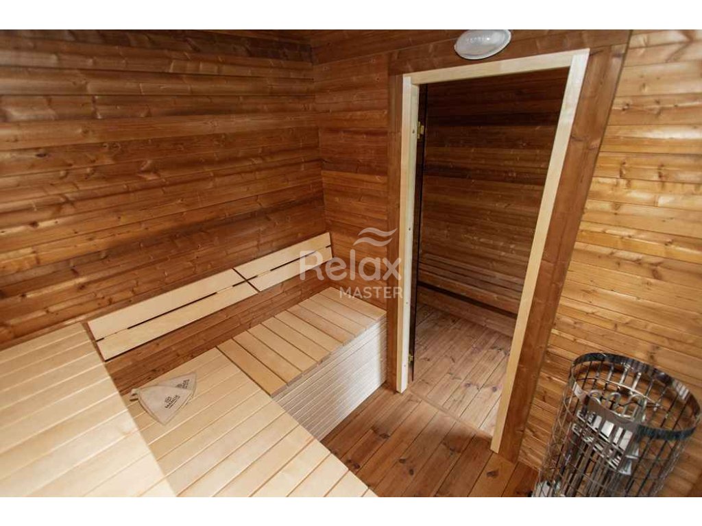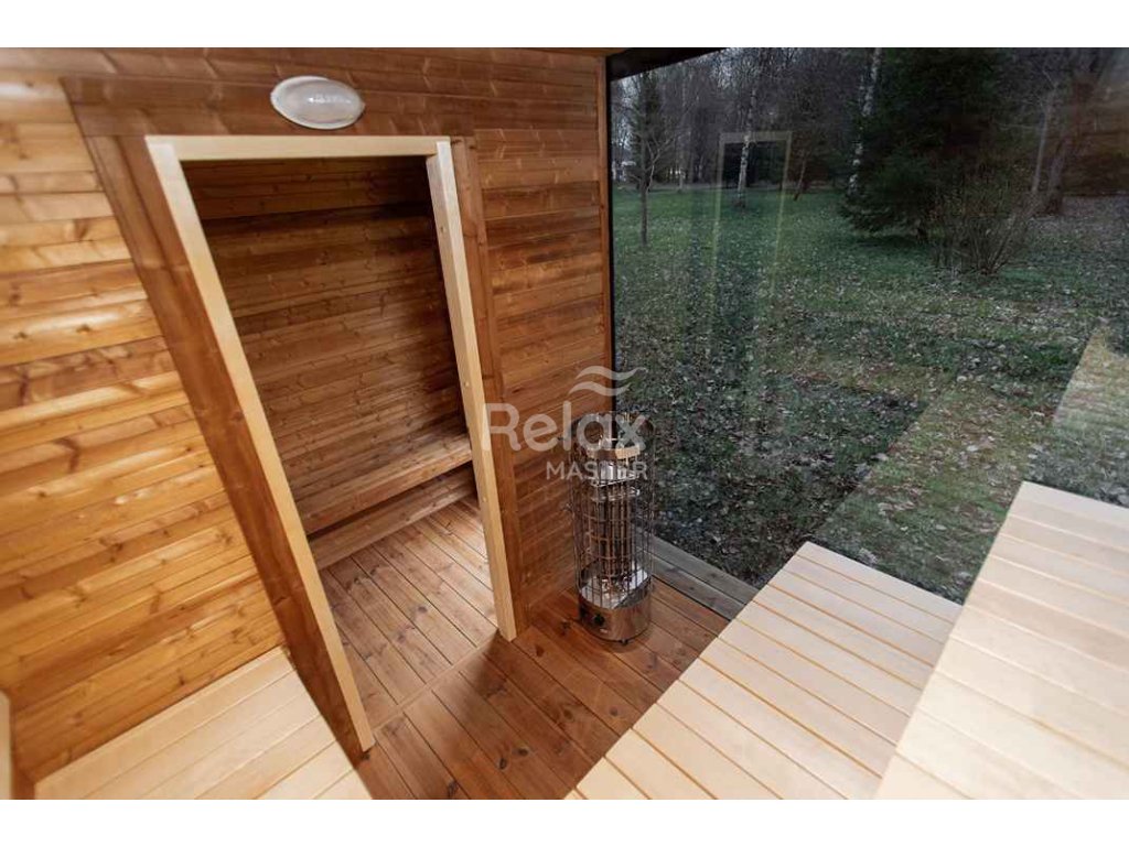 Materiál sauny: Vysoce kvalitní smrk nebo termo dřevo, které je odolné vůči vlhkosti a teplotním změnám, čímž prodlužuje životnost sauny