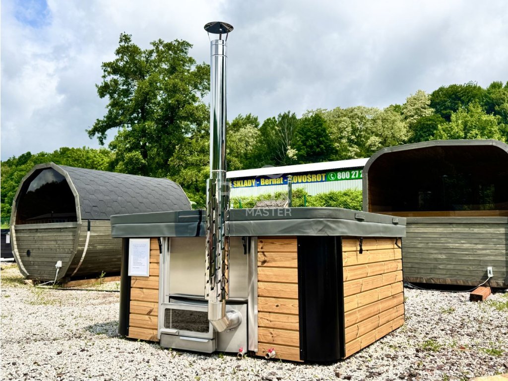 Akrilowa kwadratowa wanna z hydromasażem 220x220 z piecem Horizon – Luksusowe wellness z wyglądem marmuru i zaawansowaną technologią