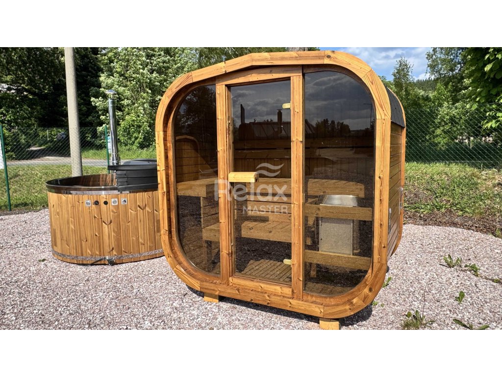 Designowa sauna ogrodowa CUBE MINI z drewna termo – kompaktowe wellness do Twojego ogrodu