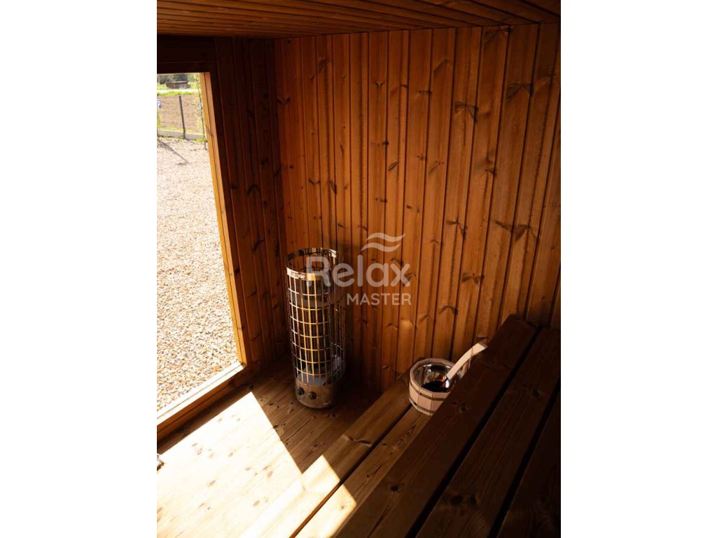 Ogródowa sauna to doskonały pomysł na urozmaicenie ogrodu. Dodając odrobinę luksusu, tworzymy oazę odpoczynku. Domek może łatwo zapewnić niezapomniane wrażenia każdego dnia. Został wykonany przez zespół prawdziwych profesjonalistów i pasjonatów, którzy zadbali o każdy detal, co sprawiło, że Domek Saunowy 5 x 2,2 m – Sauna oferuje wiele niezawodnych i innowacyjnych rozwiązań. Na przykład między deskami z drewna świerkowego znajduje się wypełnienie z prasowanej wełny o grubości 50 mm. Dzięki temu możemy być pewni, że ciepło wewnątrz sauny nie ucieknie przez ściany. Zamontowana taśma LED w saunie pomoże stworzyć wyjątkową atmosferę. Takie oświetlenie na pewno zapewni komfortowe pobyty w saunie.