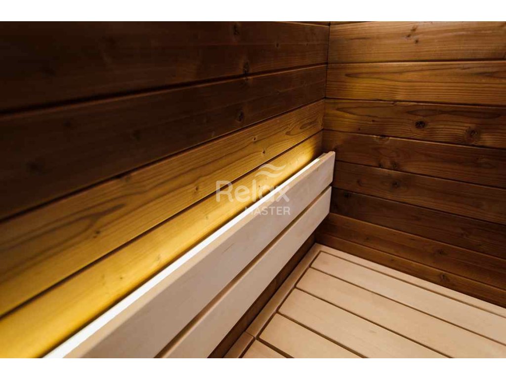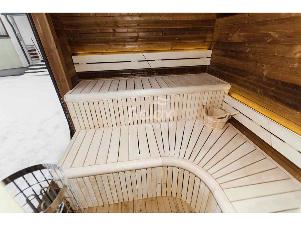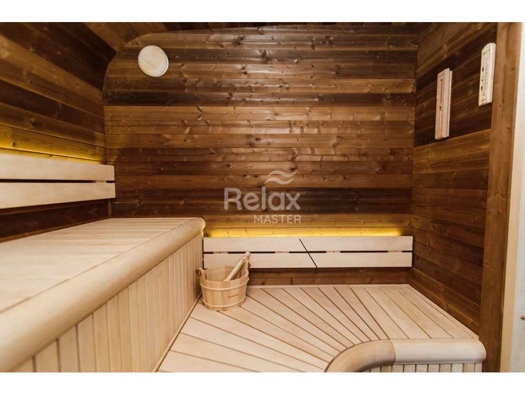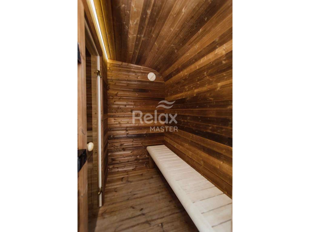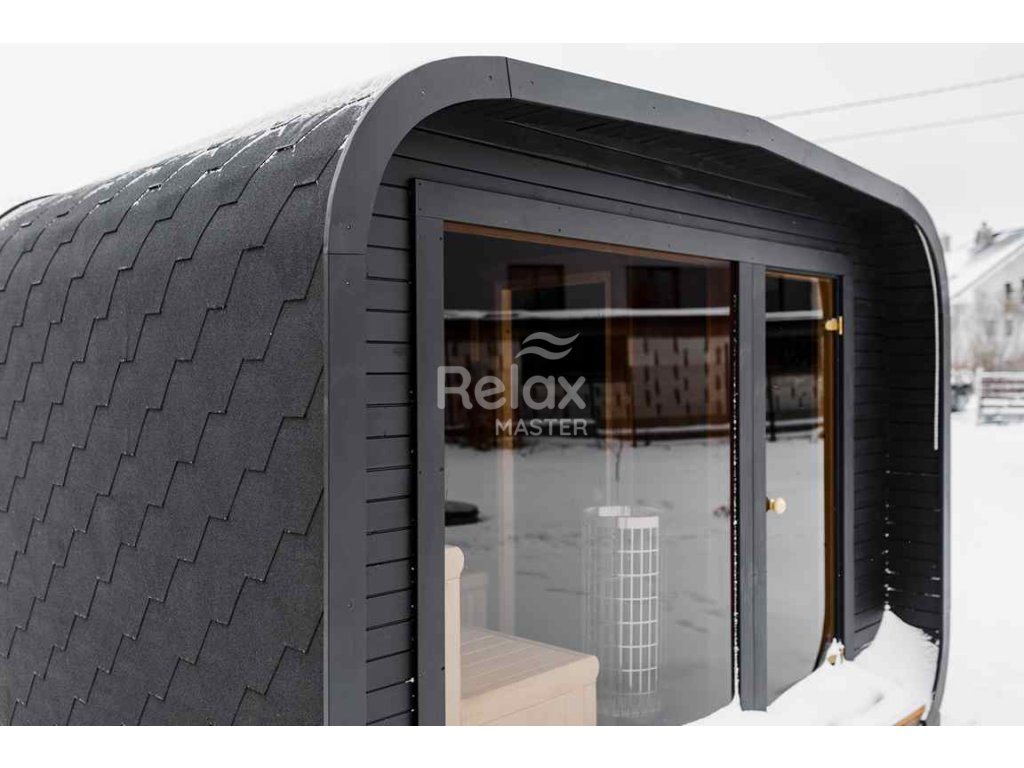 Wysokiej jakości sauna wykonana ze świerkowego drewna termicznego oferuje doskonały relaks i korzyści zdrowotne dla ciała i umysłu. Dzięki przemyślanej izolacji z 5 cm wełny mineralnej PAROC sauna jest doskonale ocieplona, co zapewnia długotrwałe ciepło i oszczędność energii. Solidna konstrukcja z 44-milimetrową zewnętrzną ścianą gwarantuje wytrzymałość i odporność na wiele lat. Wygodne leżanki z drewna lipowego nadają naturalny i przyjemny charakter podczas korzystania z sauny. Podłogi wykonane są z wysokiej jakości tarasowych desek termicznych, które są odporne na wilgoć i łatwe w utrzymaniu. Dach pokryty gontem bitumicznym zapewnia ochronę i estetyczny wygląd, a kolor można dobrać według własnych preferencji. Sauna wyposażona jest w skuteczną wentylację, która utrzymuje przyjemny i zdrowy klimat. Instalacja elektryczna obejmuje nowoczesne oświetlenie z 2 oryginalnymi lampami Harvia, tworzącymi przyjemną atmosferę. Bezpieczeństwo i styl gwarantują drzwi oraz okna z hartowanego szkła. Kolor sauny można dostosować dokładnie do własnego gustu i wnętrza. Czas realizacji wynosi od 6 do 8 tygodni, po czym dostarczymy w pełni zmontowaną saunę wraz z zamontowanym i podłączonym piecem oraz wysokiej jakości kamieniami lawowymi.