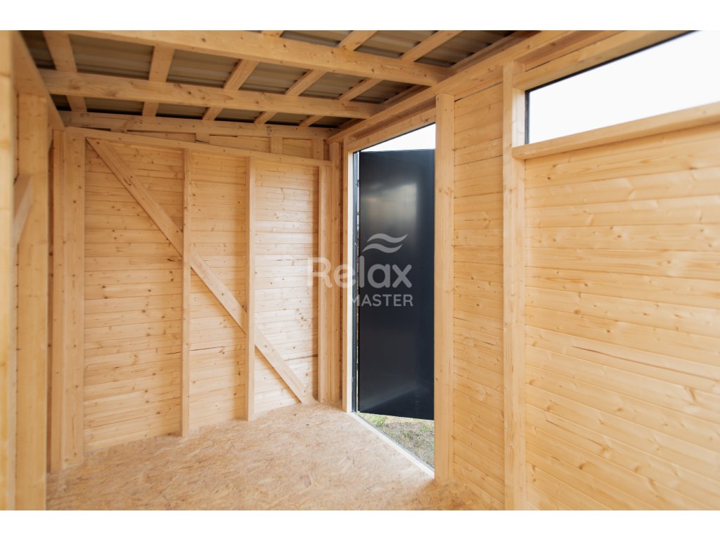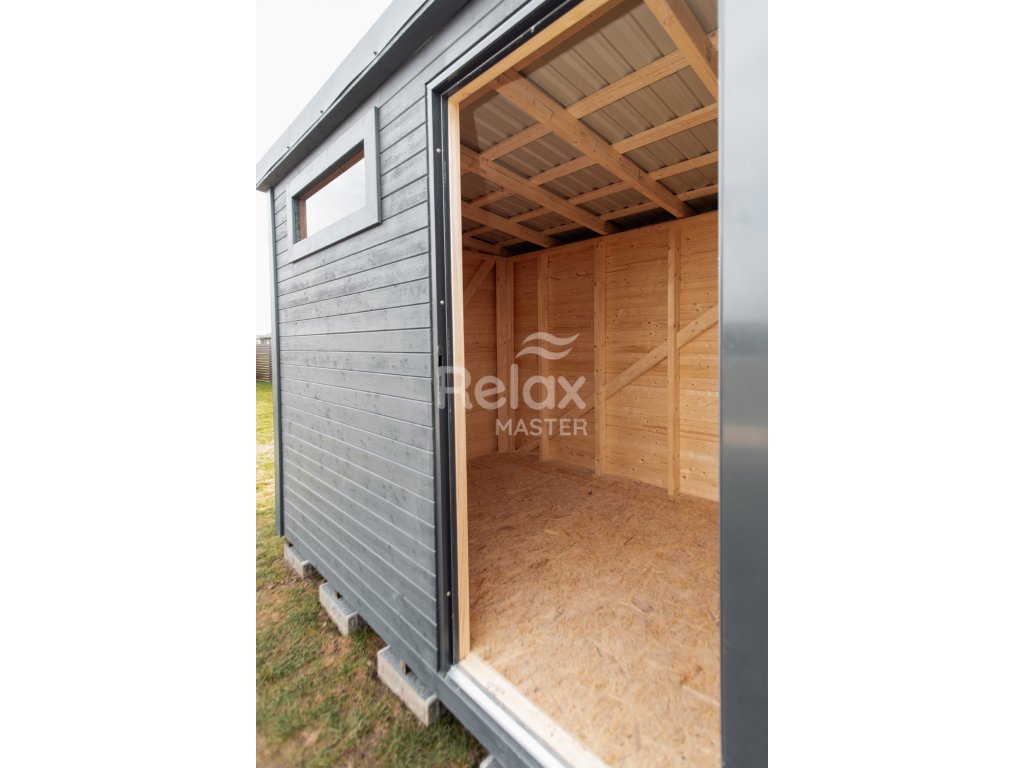 Domek ogrodowy z drewna z blaszanym dachem i szklanym oknem jest idealnym wyborem do przechowywania narzędzi, wyposażenia lub jako stylowa altana w ogrodzie. Konstrukcja z wytrzymałego drewna konstrukcyjnego 45×95 mm (C24) zapewnia stabilność, blaszany dach chroni przed deszczem, a podłoga z płyty OSB z masą asfaltową jest odporna na wilgoć. Zewnętrzne świerkowe obicie jest malowane dla dłuższej trwałości. Domek posiada zamykane metalowe drzwi (90×200 cm) i hartowane okno szklane (30×90 cm) zapewniające naturalne światło. Dostępny w różnych rozmiarach.