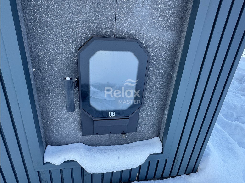 Venkovní sauna pro 4–6 osob s panoramatickými okny a kamny HUUM