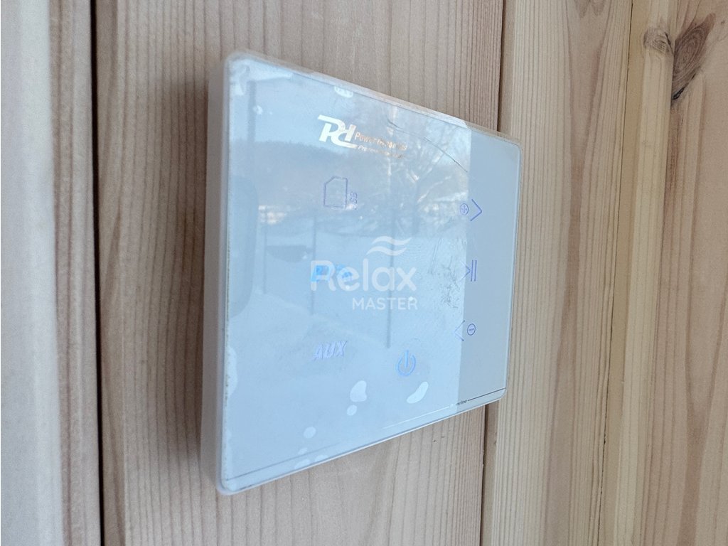 Vnější obložení z termodřeva s antracitovým nátěrem dodává sauně moderní vzhled a vysokou odolnost vůči povětrnostním vlivům. Exteriér je doplněn venkovním osvětlením (4 ks), které zajišťuje bezpečný a elegantní provoz i po setmění. Střecha je provedena z plechu pro maximální ochranu.