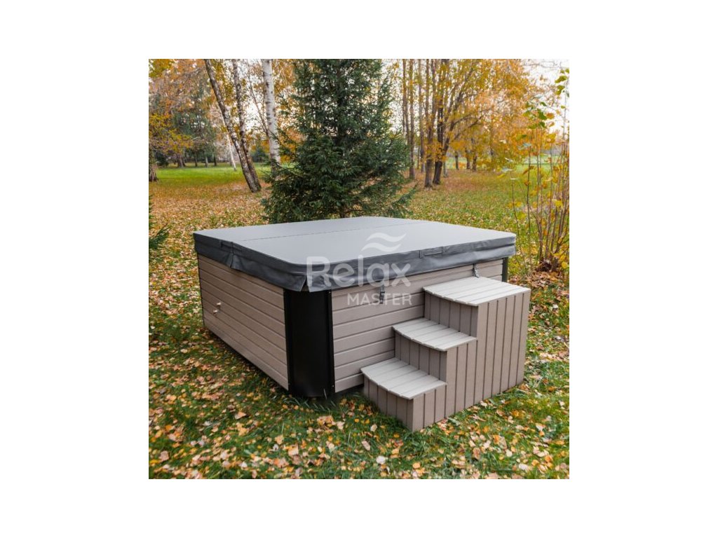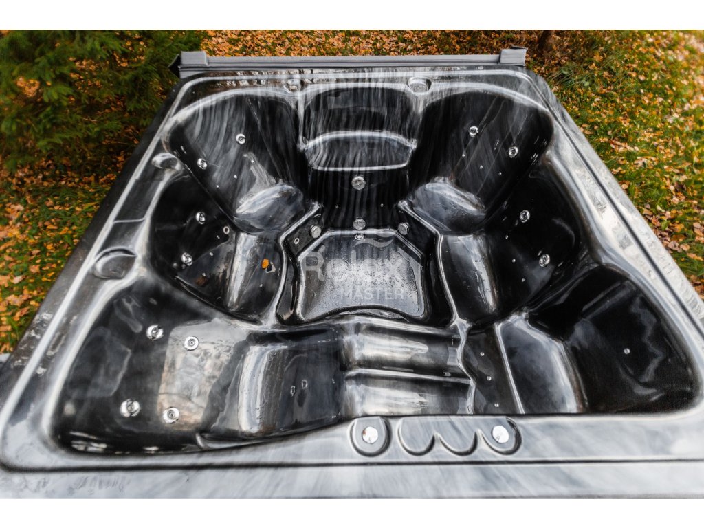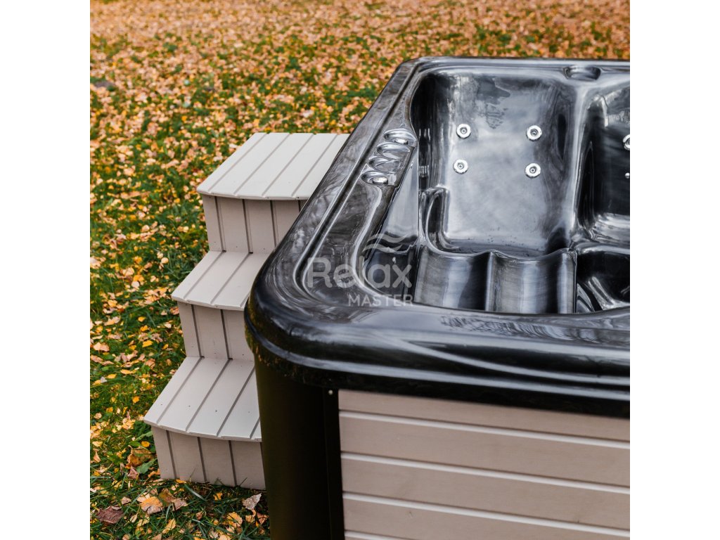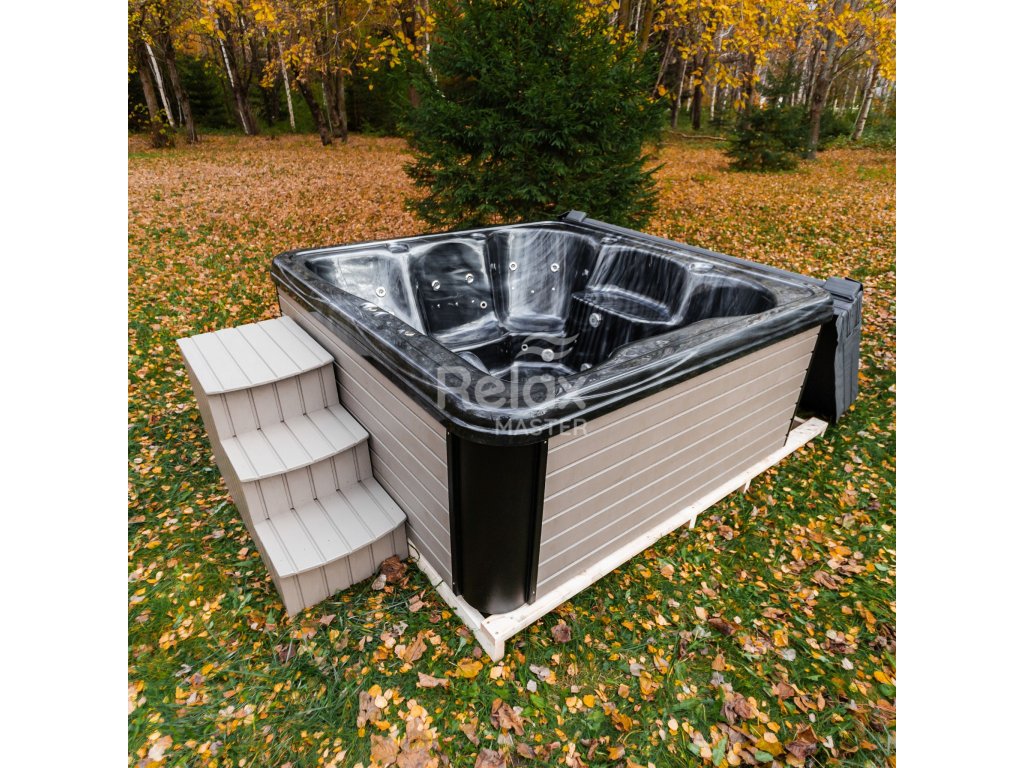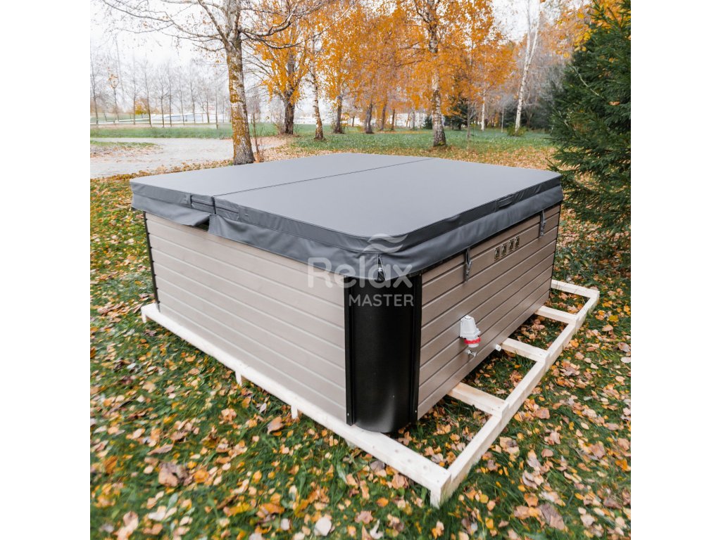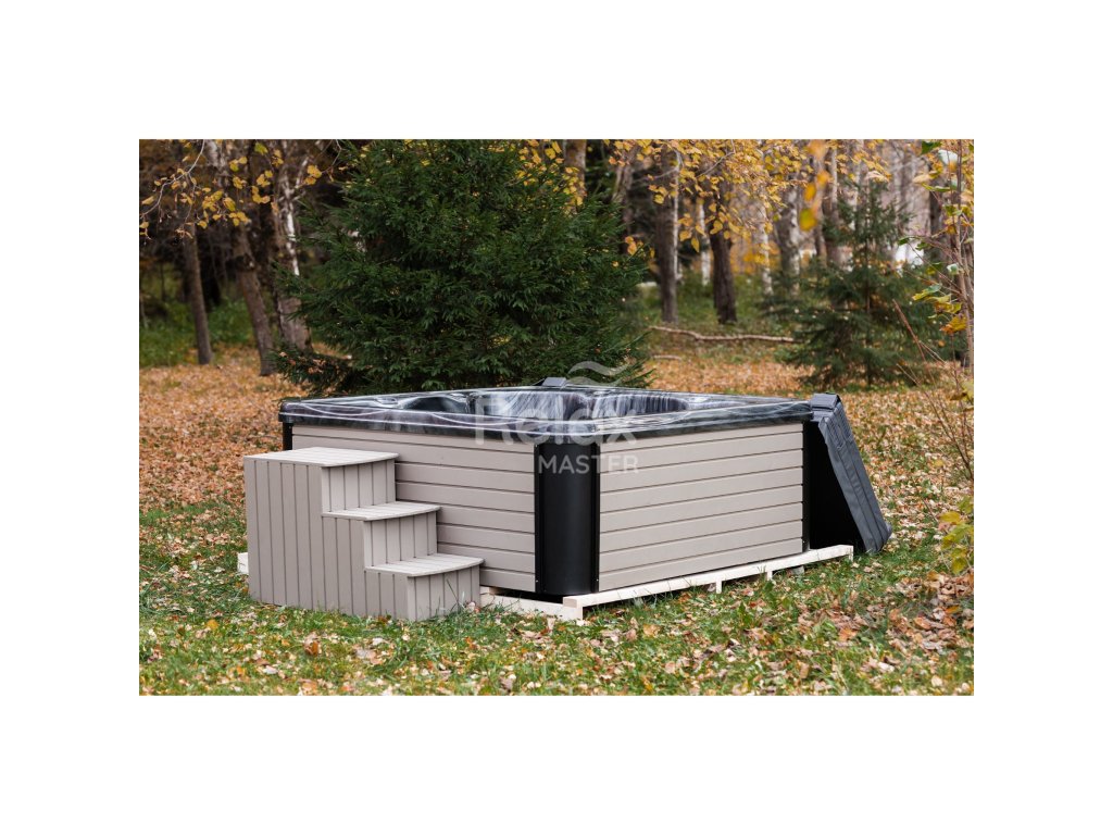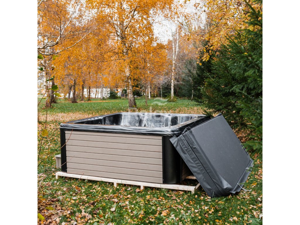 Akrylátová štvorcová vírivka 245×245 cm s integrovaným kúrením – obklad z termo dreva