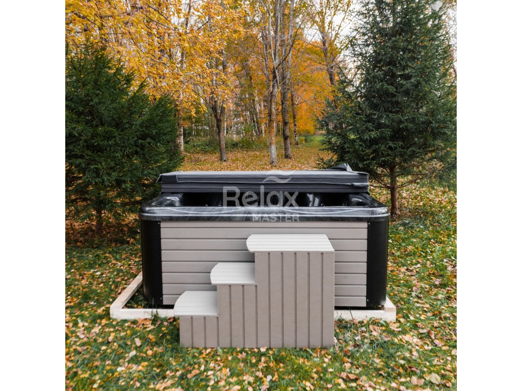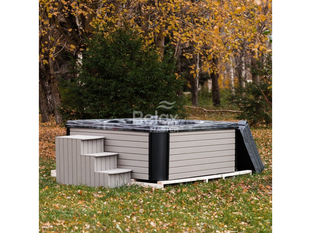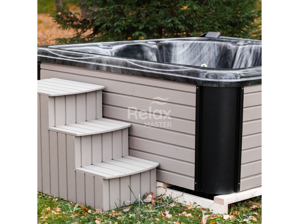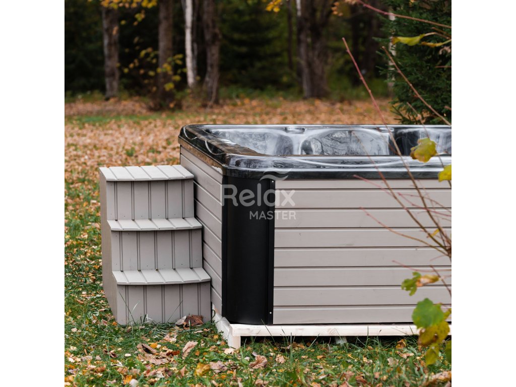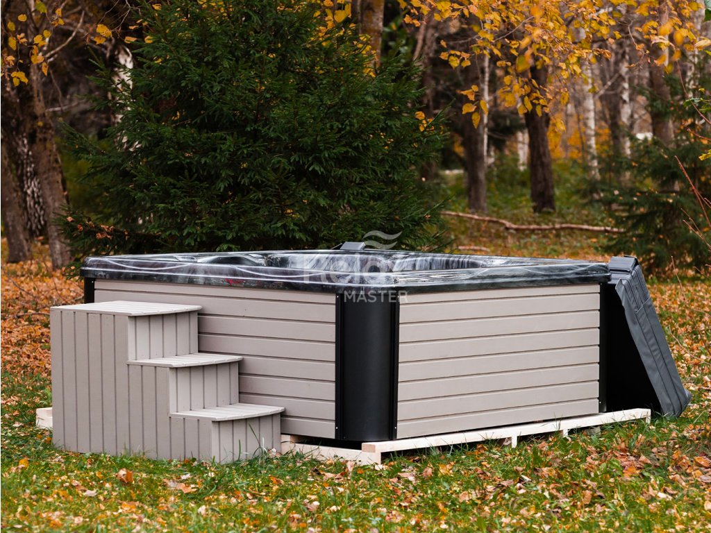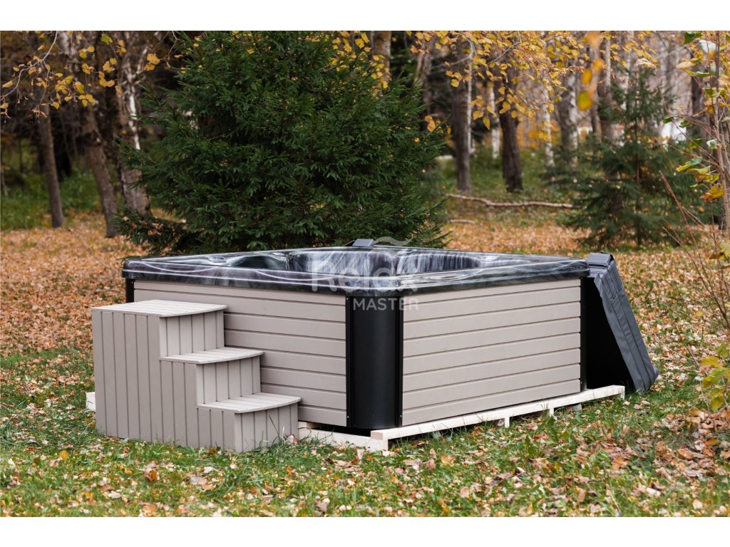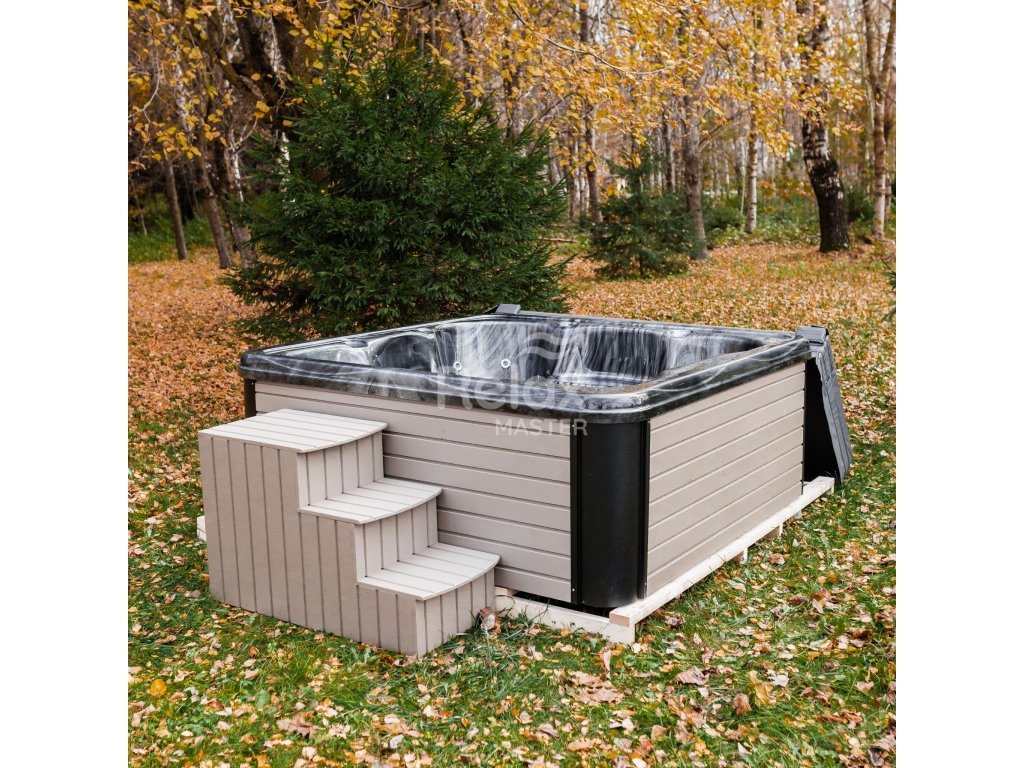 Akrylátová štvorcová vírivka 245×245 cm s integrovaným kúrením – obklad z termo dreva