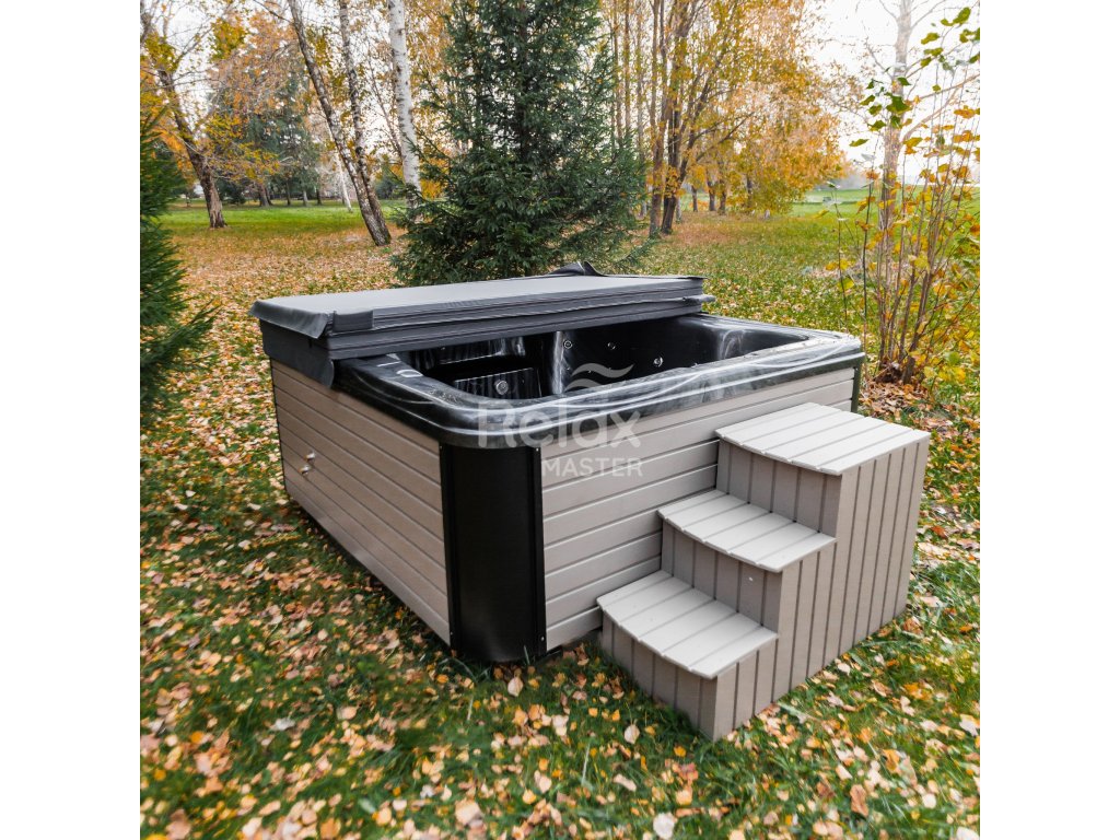 Prémiová štvorcová vírivka s integrovaným ohrievačom a elegantným obkladom z termo dreva je ideálnym riešením pre každého, kto hľadá moderný dizajn, vysokú kapacitu a maximálny komfort pri domácom wellness. Vďaka robustnej konštrukcii a odolným materiálom je vhodná na celoročné používanie na záhrade, terase aj pri rekreačnom objekte.