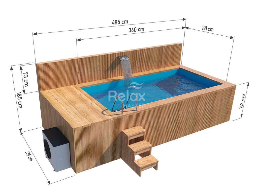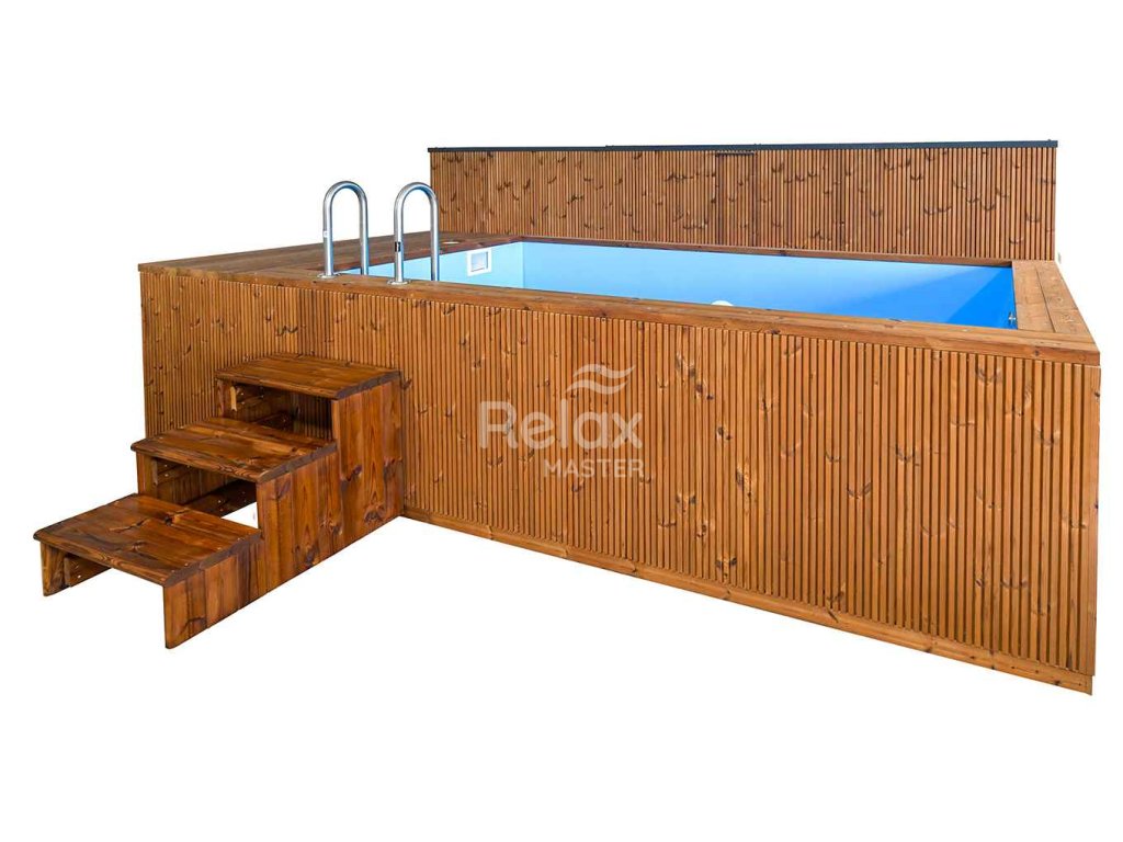 Bazén Premium SPA s protiproudem 4,85×2,35 m je spojením moderní estetiky s nepochybně odolnou konstrukcí. Za jeho vnější vzhled vděčí elegantnímu čalounění Thermo dřevem, které dokonale doplňuje typický skandinávský design. Použitím minimalistického stylu dokonale zapadá do aktuálních trendů. Doplněním bazénu Premium je jeho interiér, který tvoří modrá polypropylenová vložka. Přestože výrazně ovlivňuje estetiku modelu, jeho největší a nejdůležitější výhodou je jeho praktická stránka. Tato náplň činí proti proudový bazén zcela těsným. Navíc je pevný i proto, že celá konstrukce je vyztužena. Díky tomu si můžeme být jisti, že se nedeformuje vlivem váhy vody nebo nepříznivých povětrnostních podmínek. Pro pohodlné používání je navíc bazén vybaven dřevěnými schůdky a kovovým žebříkem.