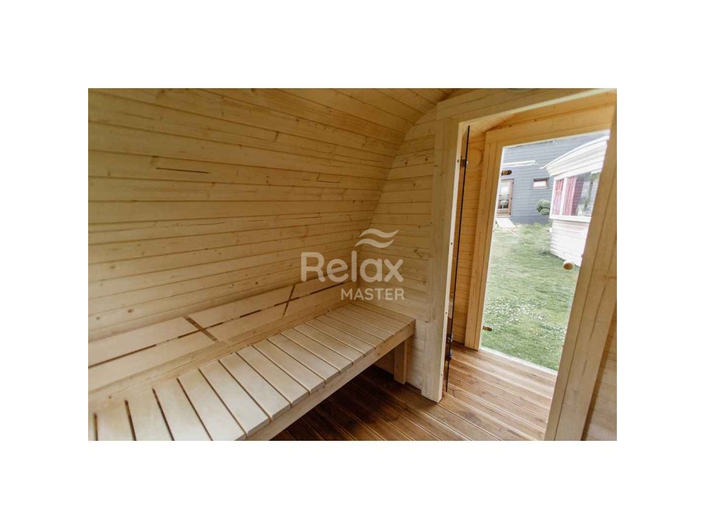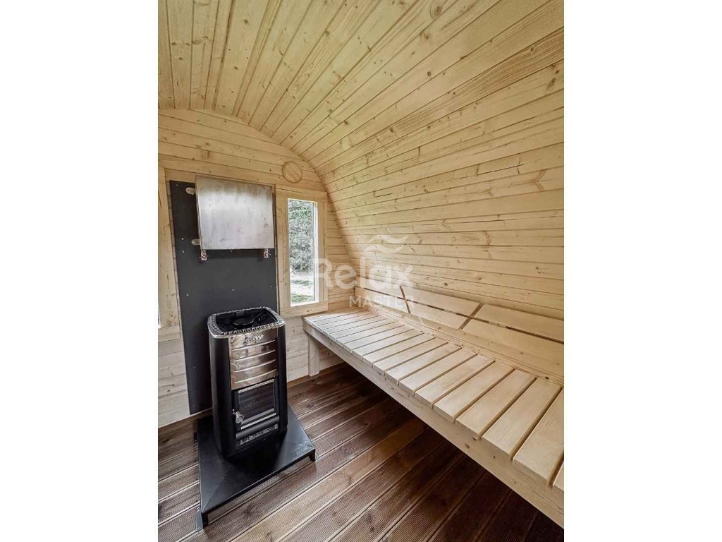 - Materiál: Sauna je vyrobená z odolného smrekového alebo termo dreva, ktoré zabezpečuje vynikajúce izolačné vlastnosti a dlhú životnosť