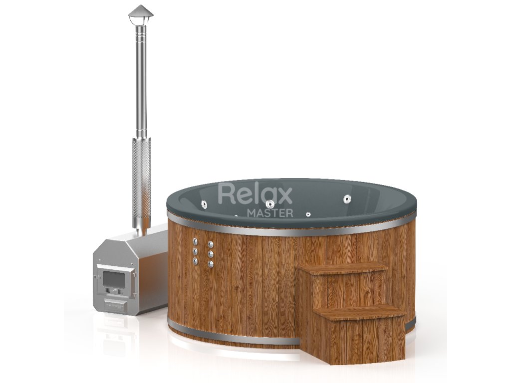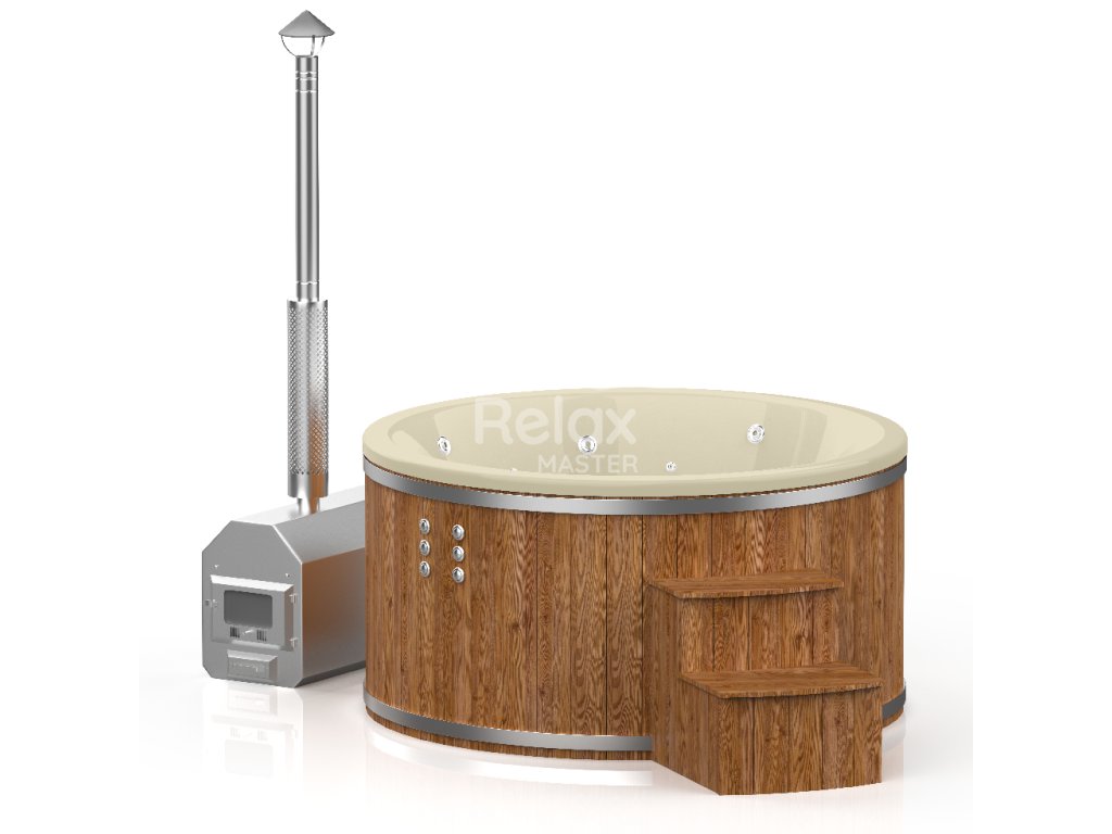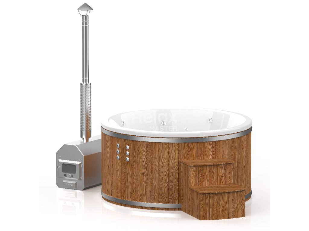 Okrúhla vírivka so sklolaminátovou vložkou, externým ohrievačom a obkladom z termo dreva