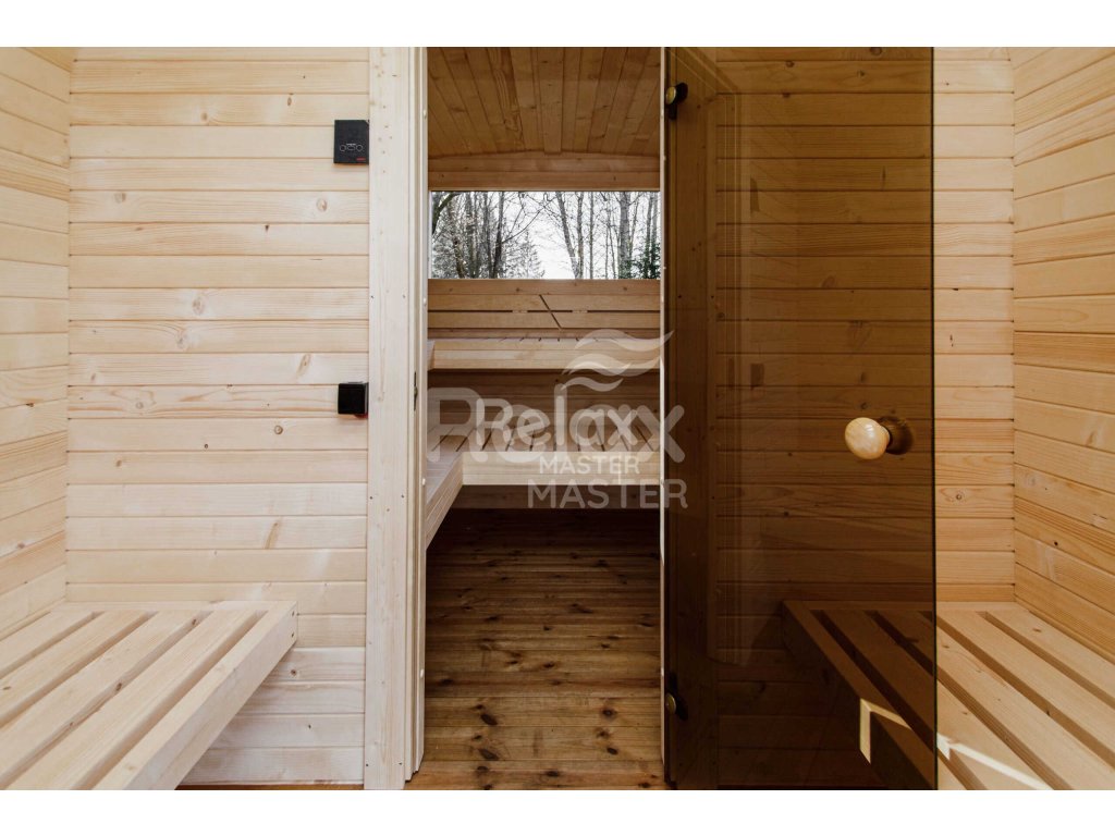 Vysoko kvalitné materiály: Sauna je vyrobená zo smreku alebo z termo dreva, čo zabezpečuje dlhú životnosť a vynikajúcu tepelnú izoláciu.